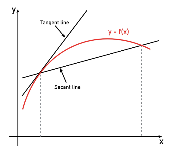 我们都知道曲线是弯的,一个曲线是很难进行计算的,所以聪明的数学家就突发奇想,把这个弯的曲线无限的放大,那么相邻的很近的两个点之间就可以看作是直线。